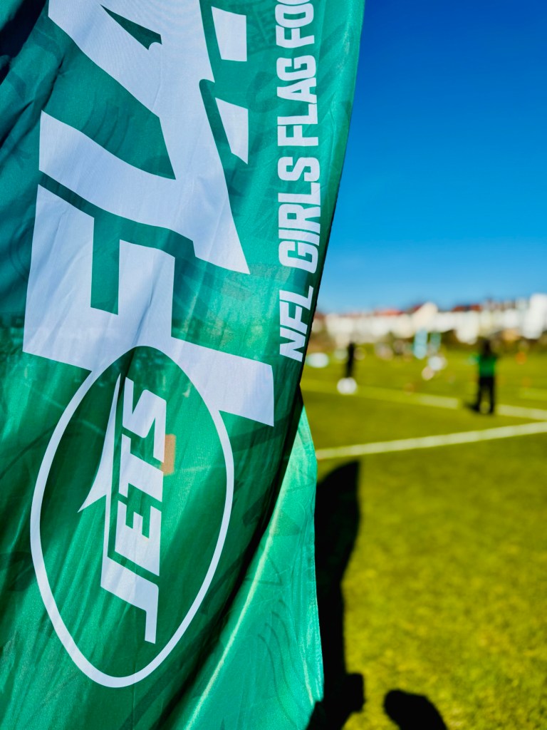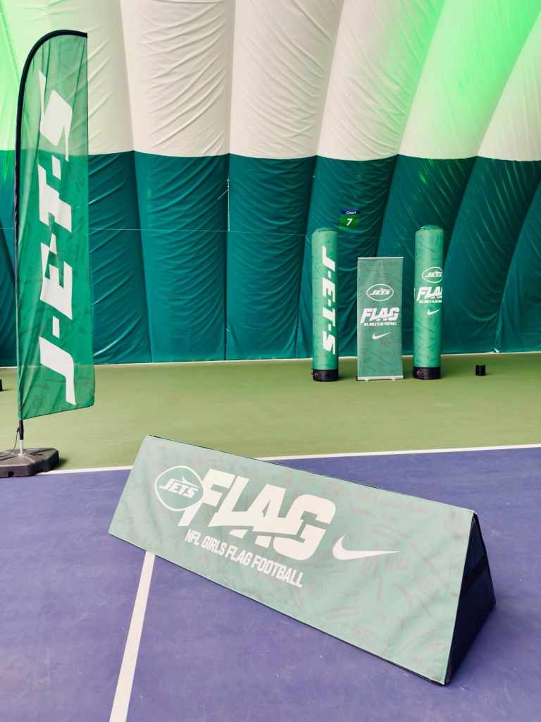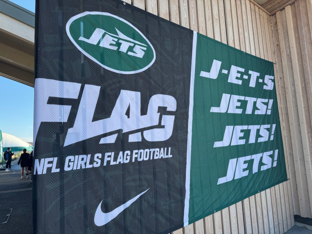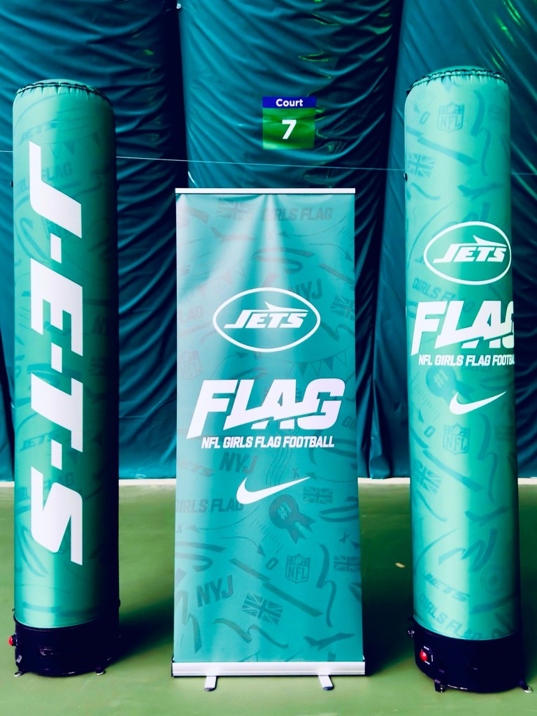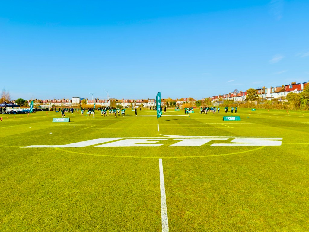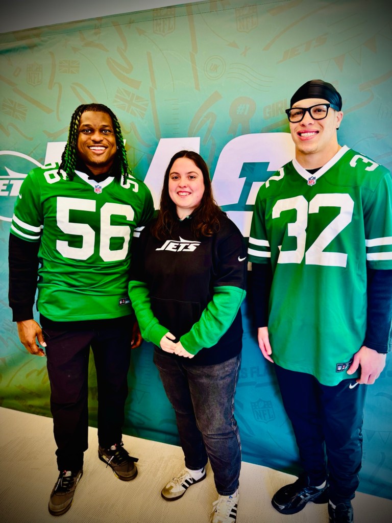 The girls who were new to the sport were introduced solely to the Jets, as there was no joint promotion with the Bears this time (which I think we all agree is better, eh?). And of course the J-E-T-S chant led by Quincy Williams, who was in attendance with Isiah Davis. All the attendants were put through their paces via combine drills, and one coach even commented, “I’ve never seen anything like these scores from a school” when watching ‘Fields’ in action. Approximately 300 participants from 28 schools joined the NYJ family for fun and games and to learn about the sport we all love.