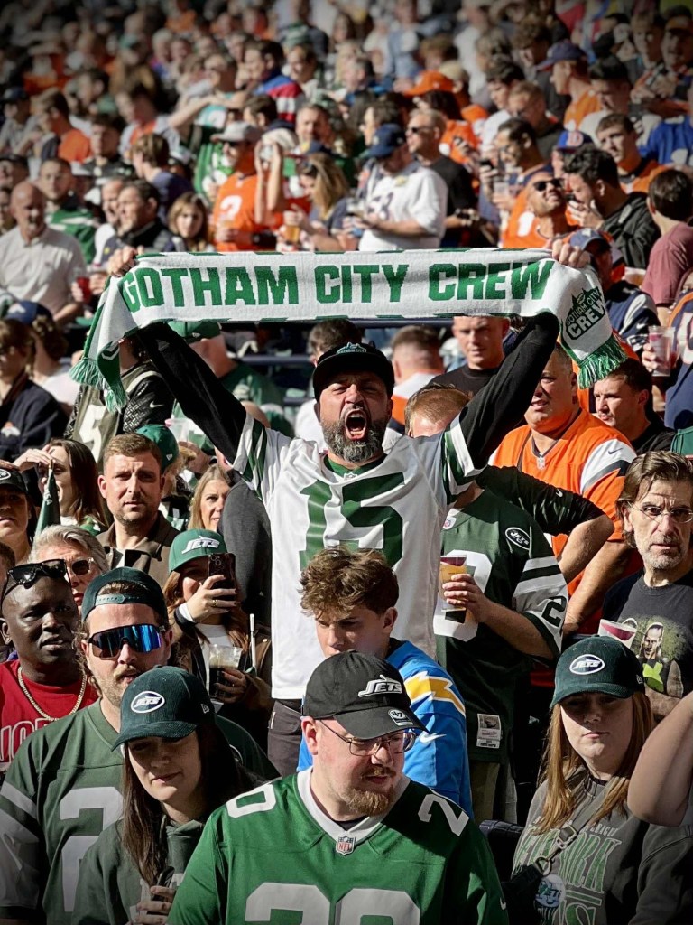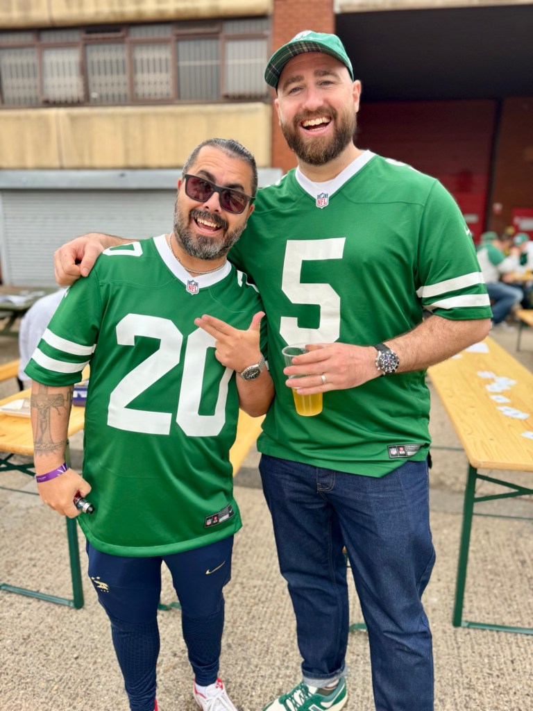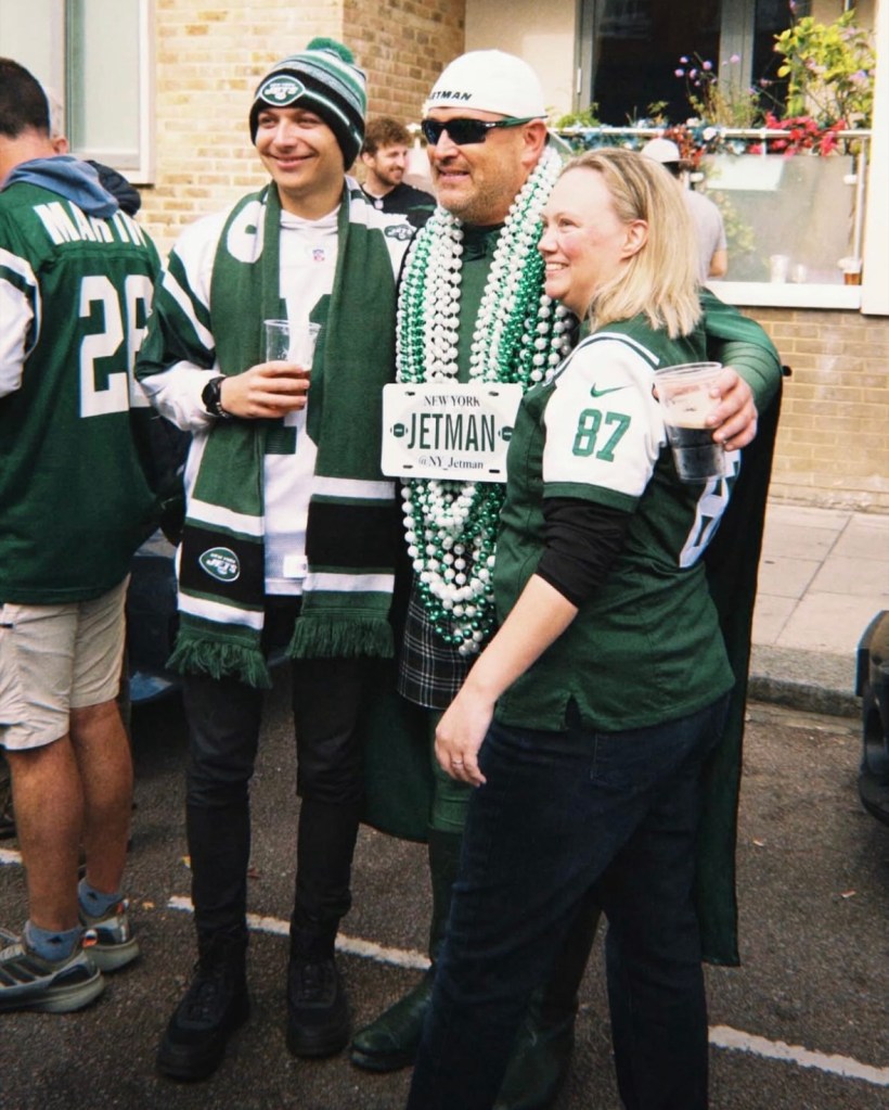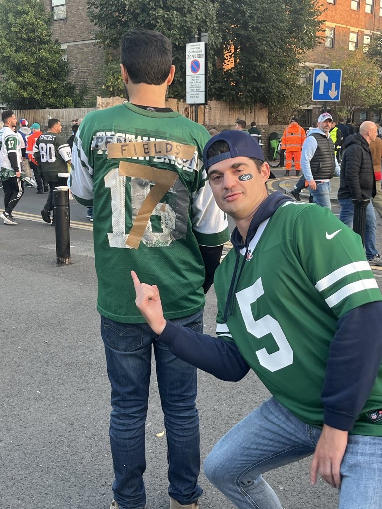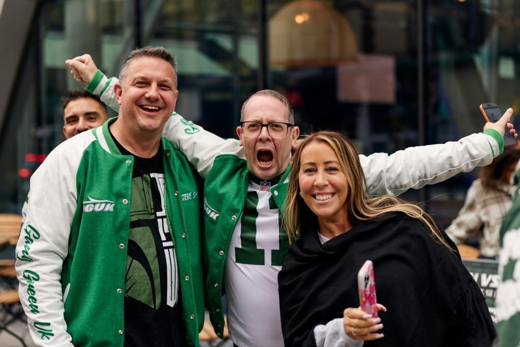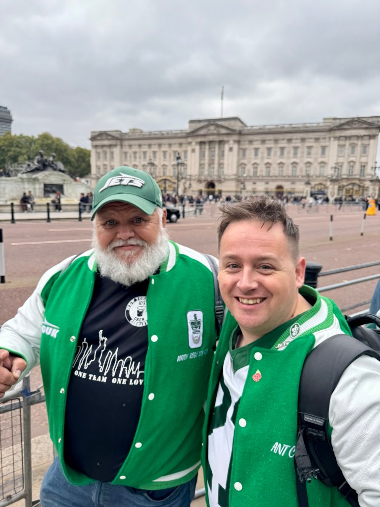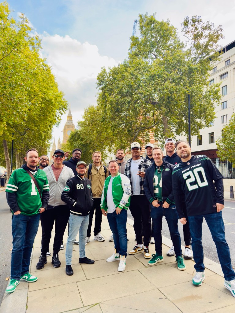 The group that started the 2025 walking tour, more joined along the way tooFrank West (AKA Jet Green Santa) and Anth from Gang Green UK at Buckingham Palace‘Steve Shoes’ (left), John Bradley and RaquelClaudio (from Gotham City Crew) and friendsWayne Chrebet and Mikey Hulk HandsBart Scott (left) signs Nic’s mini helmet‘Welsh Tony’ alongside Jon from Hippo JetsAnthony Becht (right)Claudio from Gotham City Crew (left) and the Inaugural International Fan of the Year, Frazer Campbell‘Vintage Lou’ and NicMikey Hulk Hands and MarkLegendary UK Jets fan, Gus (right) from the NYJ Atlantic Flight PodcastAnth (left) and Boba JettNic (second-left) with members of Gang Green Germany‘Larry Potter’ (left) alongside Welsh Tony (centre). Skane, a Raiders fan from Sweden even popped inMathieu (left) flew in from Spain for the gameGus, Ryan and Andrés GrovesAlexis (Aka The Green Shadow) came from Houston for the gameAmanda Gudowitz (right) and pals Lauren and Warren (right)Claudio and MarkJetman joins the UK & Ireland Jets FansAnthony brings the Green smokeHyping up the fansThe march to the stadium beginsMark and his wife, Christine‘Jack the Jester’ & Frank WestMikey Hulk Hands and his fiancée at the game in Tottenham Hotspur StadiumFlying the flags at the London ‘home game’