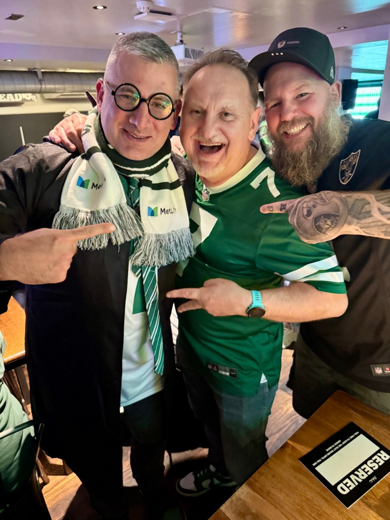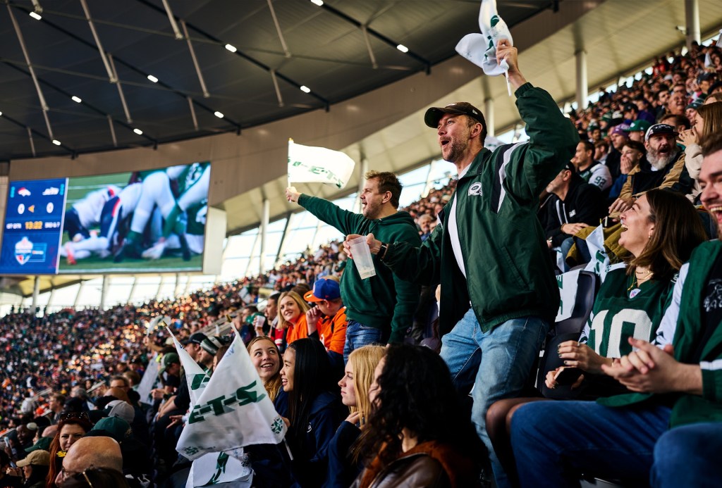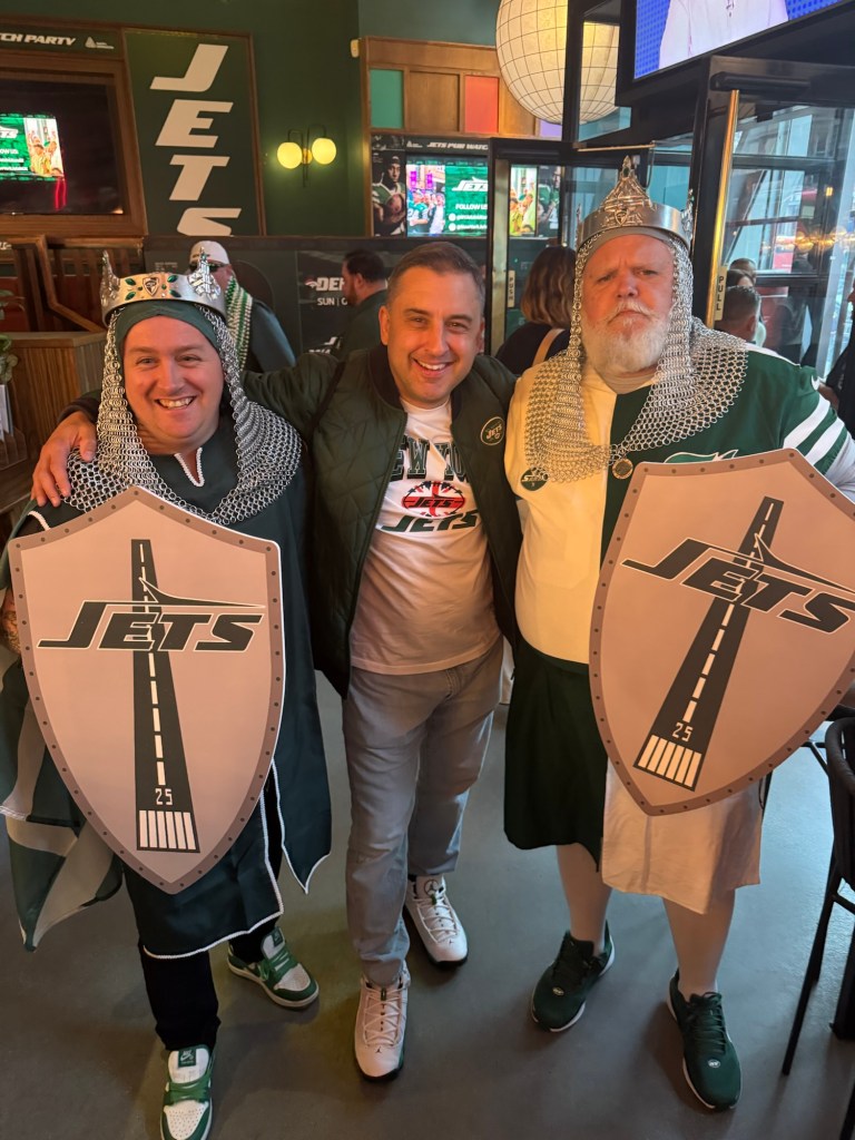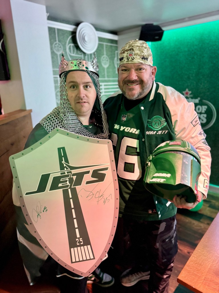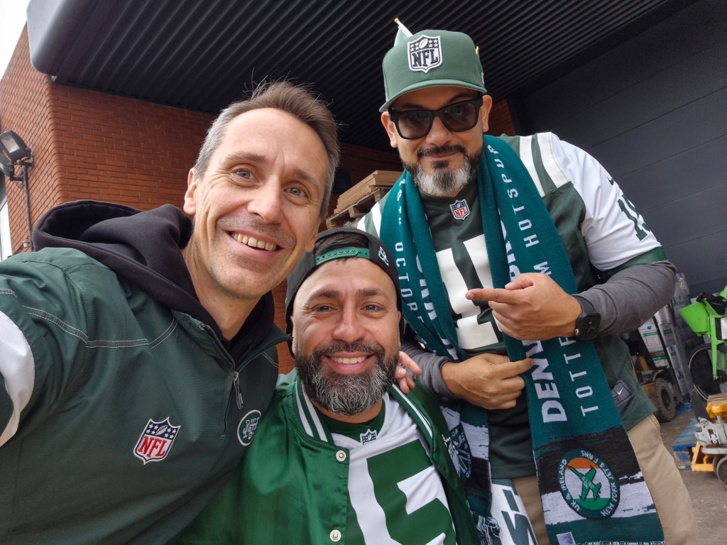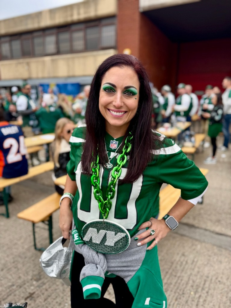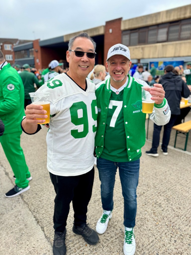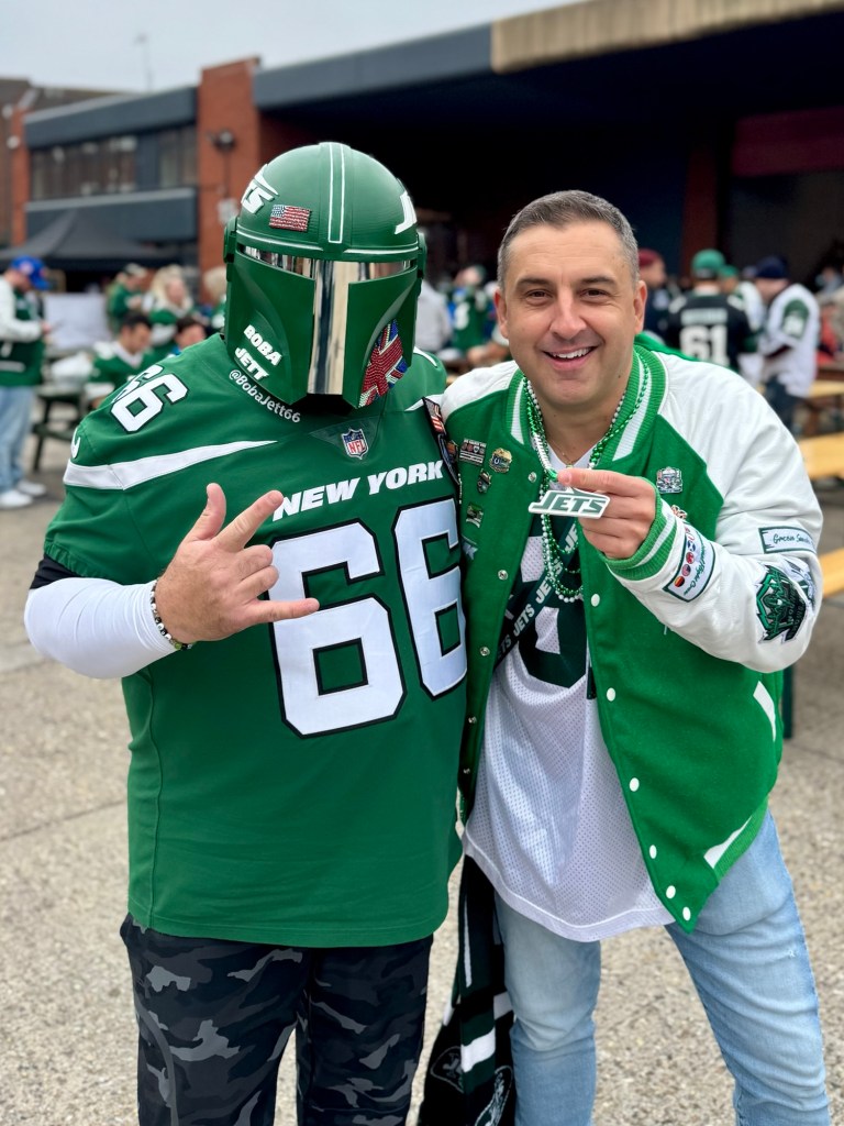 The group that started the 2025 walking tour, more joined along the way tooFrank West (AKA Jet Green Santa) and Anth from Gang Green UK at Buckingham Palace‘Steve Shoes’ (left), John Bradley and RaquelClaudio (from Gotham City Crew) and friendsWayne Chrebet and Mikey Hulk HandsBart Scott (left) signs Nic’s mini helmet‘Welsh Tony’ alongside Jon from Hippo JetsAnthony Becht (right)Claudio from Gotham City Crew (left) and the Inaugural International Fan of the Year, Frazer Campbell‘Vintage Lou’ and NicMikey Hulk Hands and MarkLegendary UK Jets fan, Gus (right) from the NYJ Atlantic Flight PodcastAnth (left) and Boba JettNic (second-left) with members of Gang Green Germany‘Larry Potter’ (left) alongside Welsh Tony (centre). Skane, a Raiders fan from Sweden even popped inMathieu (left) flew in from Spain for the gameGus, Ryan and Andrés GrovesAlexis (Aka The Green Shadow) came from Houston for the gameAmanda Gudowitz (right) and pals Lauren and Warren (right)Claudio and MarkJetman joins the UK & Ireland Jets FansAnthony brings the Green smokeHyping up the fansThe march to the stadium beginsMark and his wife, Christine‘Jack the Jester’ & Frank WestMikey Hulk Hands and his fiancée at the game in Tottenham Hotspur StadiumFlying the flags at the London ‘home game’